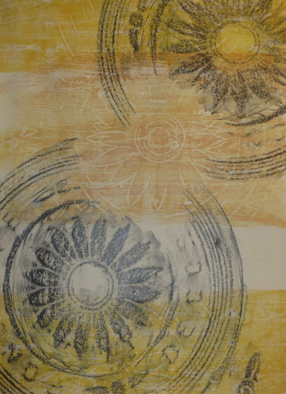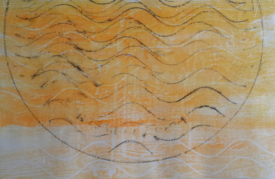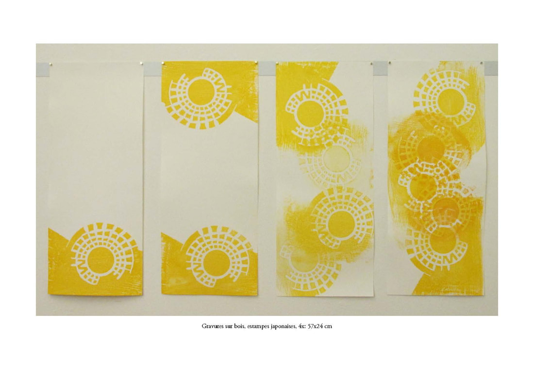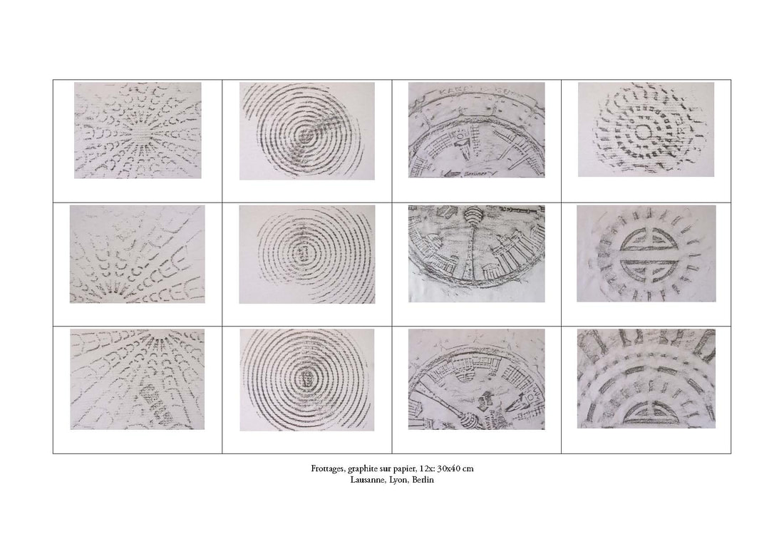 Parfois, nous ne voyons pas les éléments du quotidien tant ils sont proches. C’est le cas d’éléments urbains comme les regards de chaussée et les grilles. Notre quotidien se révèle alors dans mon travail par des allers-retours entre le frottage et la gravure sur bois. Les grilles en volutes que je rencontre sur mon chemin sont évocatrices d’infinis, de vagues, de spirales et de points d’interrogation. La grille peut-elle devenir ouvertures ?